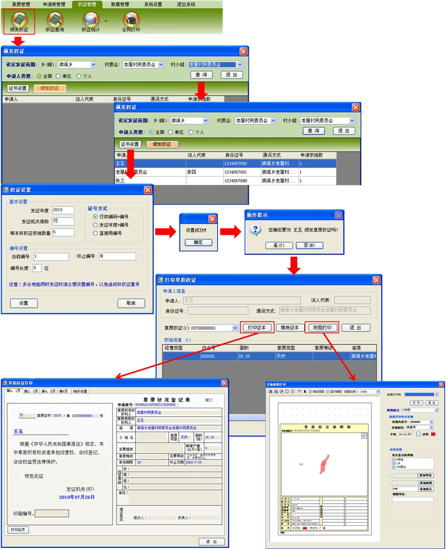 軟件的設(shè)計(jì)采用當(dāng)前最先進(jìn)的地理信息系統(tǒng)理念,以我省草原家庭承包制度改革的大框架作為架構(gòu)設(shè)計(jì)的基礎(chǔ),充分考慮了草原基層用戶的實(shí)際情況,按工作流進(jìn)行設(shè)計(jì),逐級(jí)開(kāi)發(fā)功能,預(yù)留各類(lèi)數(shù)據(jù)及功能接口,便于今后的擴(kuò)展升級(jí)。軟件既做到了簡(jiǎn)單易學(xué),又實(shí)現(xiàn)了很強(qiáng)的草原管理、數(shù)據(jù)管理以及自動(dòng)生成公示表、申請(qǐng)表、承包合同、權(quán)證、附圖等各種表格文檔及圖紙等功能。