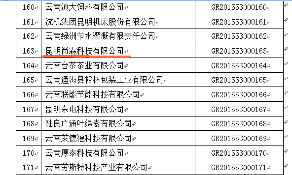 附件:云南省2015年第一批高新技術(shù)企業(yè)名單